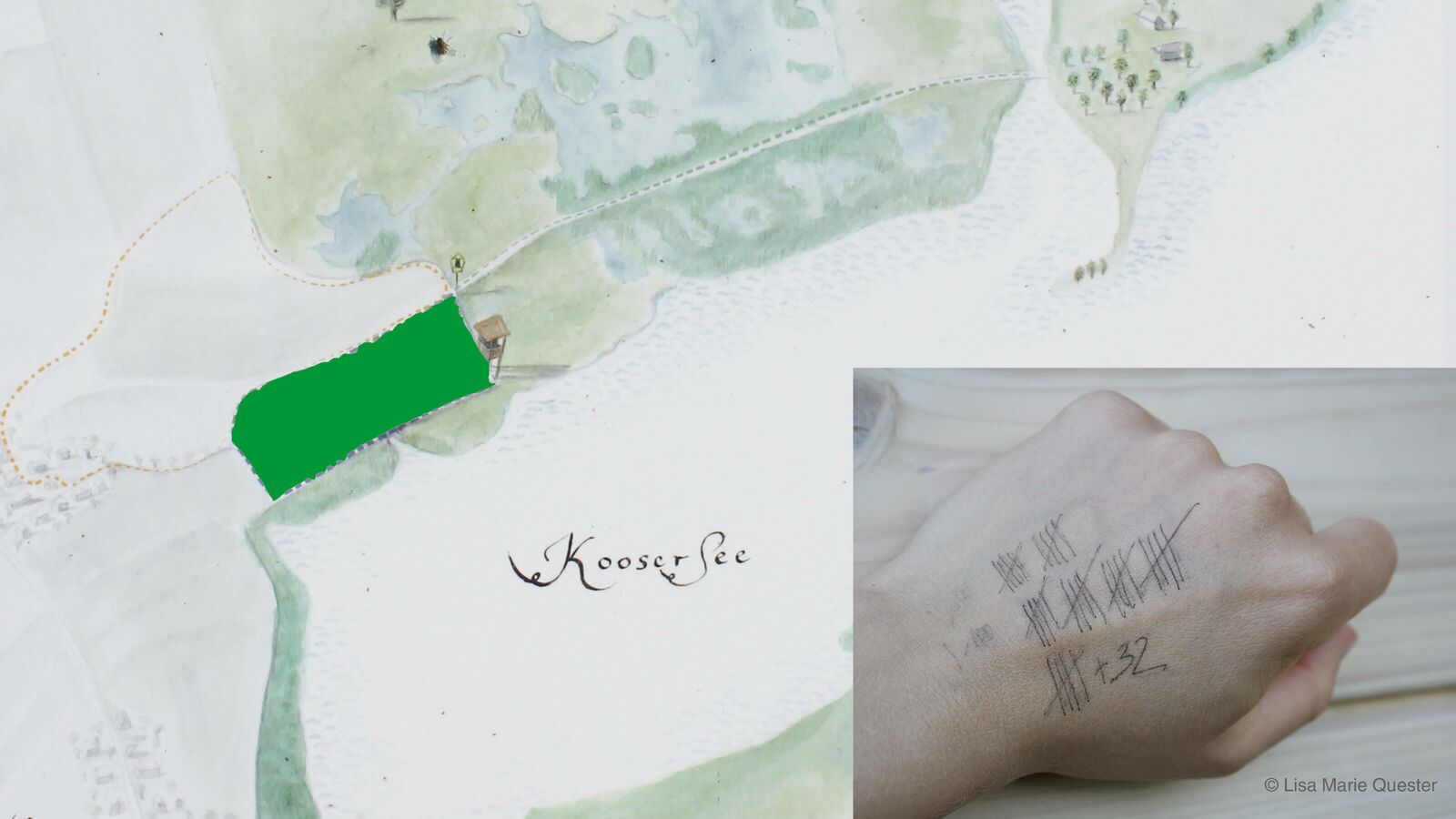 Die Textilkünstlerin Lisa Marie Quester, ebenfalls Alumna der Burg Giebichenstein, visualisiert die bedrohten und geretteten Moore (=Wiedervernässungsgebiete) in Form von Shibori-Textilien - einer japanischen Handfärbetechnik. Ihre Gedanken dazu fasste sie - inspiriert durch philosophische Gedanken von Byung-Chul Han und Andreas Weber – in Text.