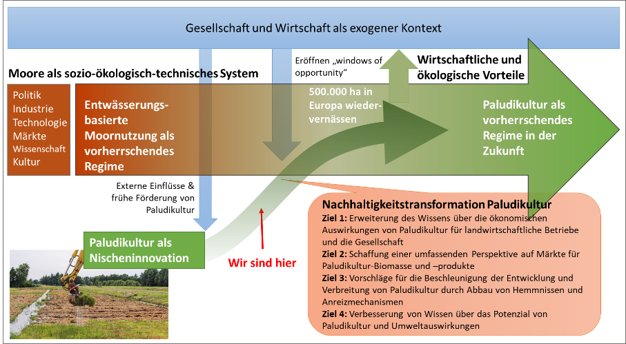Derzeit wird Paludikultur jedoch nur auf wenigen Pilotflächen in Europa praktiziert und innovative Verwertungsketten der Biomasse befinden sich erst im Aufbau. Auch Informationen über viele Aspekte, wie Wirtschaftlichkeit, Verwertungsoptionen, Akzeptanz in ländlichen Räumen und Auswirkungen auf Biodiversität sind vorhanden, jedoch bei verschiedenen Wissensträgern verstreut.
