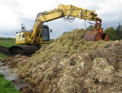 Last winter and in spring, over a thousand cubic metres of peat moss biomass were harvested from the peat moss paludiculture area established in the peatland Hankhauser Moor (NW Germany) in 2011. In addition to the tried-and-tested harvesting method using excavators and mowing baskets from the causeway, technology that can drive over the peat moss production areas was also tested at the MOOSland field day on 7th May 2024, where around 30 invited guests followed a harvesting test with a harvesting vehicle from Wellink Equipment. Layer by layer, the adapted Loglogic Softrak machine with flail mulcher removed a 40cm-thick peat moss lawn that had grown up over 13 years. It transported the biomass to the storage site using the semi-mounted bunker. The driver's sensitivity to the weight of the load on the wet, soft ground is crucial here. Torfwerk Moorkultur Ramsloh (MOKURA), the practice partner in the MOOSland joint project, processes the harvested peat moss biomass into high-quality growing media for professional horticulture.