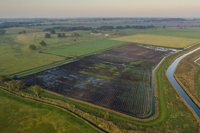 Die Einrichtung der Typha-Fläche auf ca. ~10 ha Niedermoorgrünland erfolgte durch das Verbundprojekt Paludi-PRIMA (2019-2022) und war ein Meilenstein für die Umsetzung von Paludikultur. Es wurden wertvolle Erfahrungen zu Planungs- und Genehmigungsprozessen, Flächenvorbereitung und Pflanzung gesammelt. Management und Ernte sowie Monitoring der Rohrkolbenfläche werden derzeit durch das Verbundprojekt Paludi-PROGRESS (2022-2025) fortgeführt und intensiviert. Die Praxisfläche steht zudem für weitere Erprobungen und Untersuchungen mit Kooperationspartnern zur Verfügung. So hat das Projekt PRINCESS den Rohrkolbenanbau in vergleichende Untersuchungen mit weiteren wiedervernässten Niedermoorstandorten einbezogen (Vegetation, Brutvögel, Libellen, Käfer, Spinnen; THG-Haubenmessungen, Biomasseauf- und -abbau). Nicht zuletzt stellt der Praxisanbau eine wichtige Paludikultur-Demonstrationsfläche für interessierte Besucher dar.