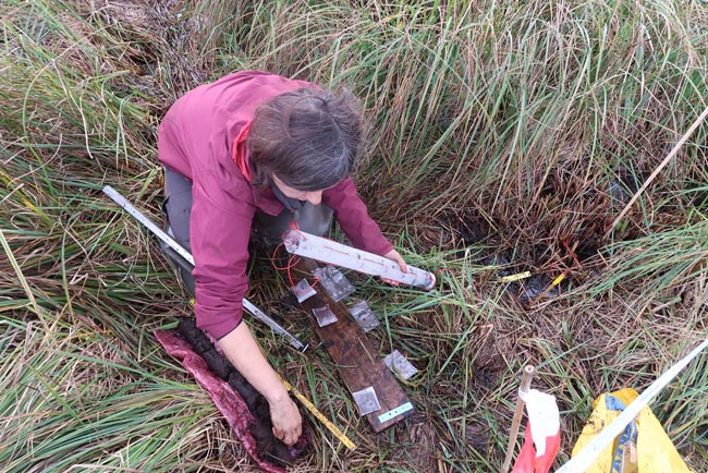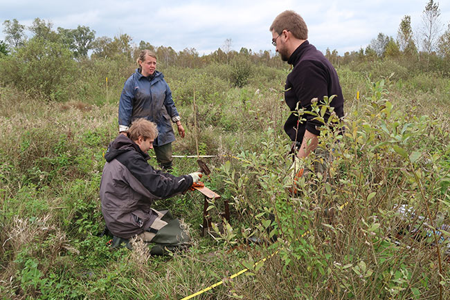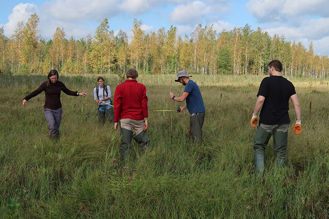 September/October 2017: Installation campaign by Greifswald and Warsaw universities in all 96 study plots in all six countries: 303 ingrowth cores with standard substrate, 303 large (0-50 cm depth) litter bag frames with local root material and standard material (rooibos tea) at three depths, 132 large (0-50 cm) litter bag cores with homogenised local peat, 404 litter bags with standard moss (Calliergonella) biomass, 480 litter bags with local above-ground biomass, painting numerous moss for assessing moss production… and almost 1 km of bamboo sticks for marking the installations!